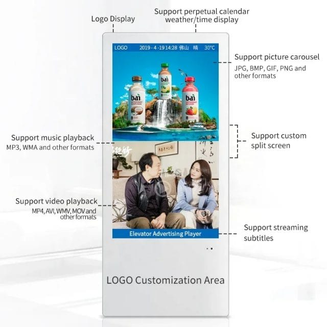 22/18.5 Inch Indoor Video Wall Mounted Lcd Tv Screen Monitor Digital Signage and Displays for media Elevator Advertising Display