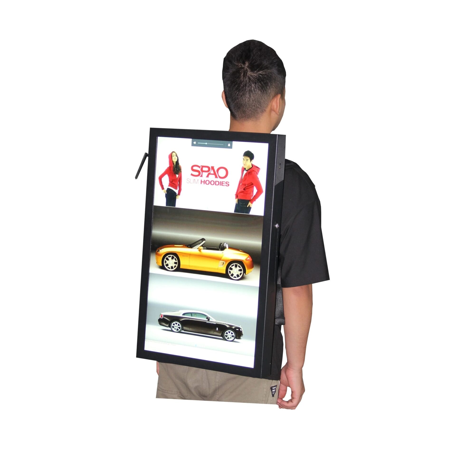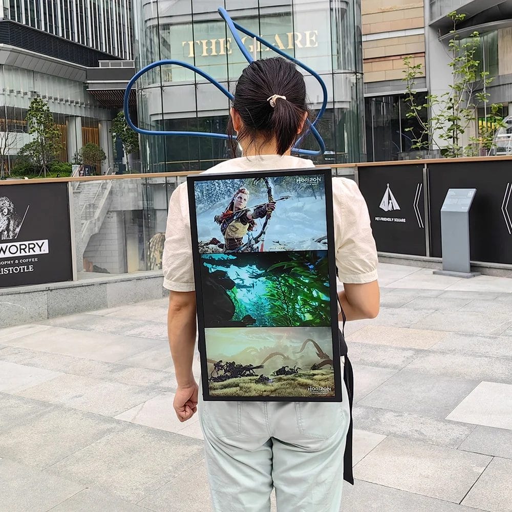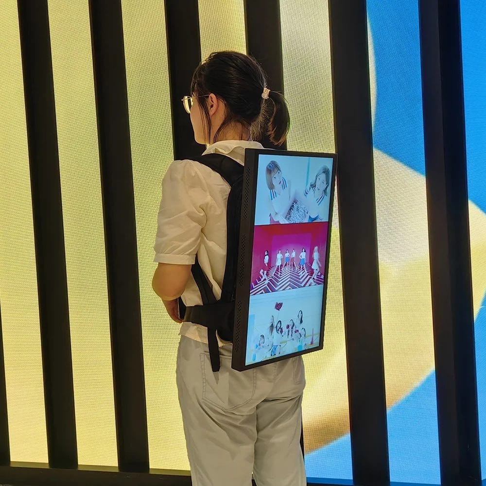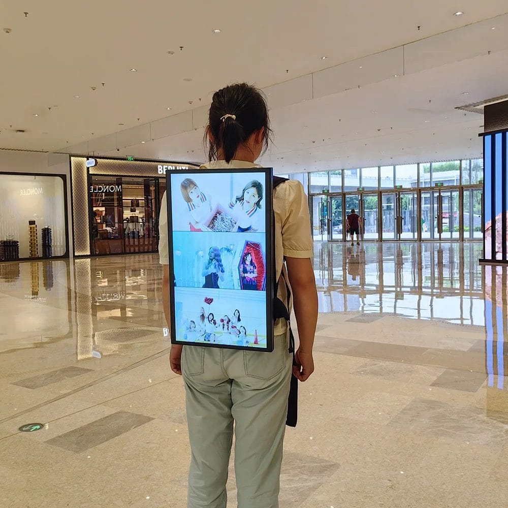 27" Semi Outdoor Mobile Portable Digital Signage Advertising Kiosk/Indoor Human Walking Backpack Advertising Playing Equipment