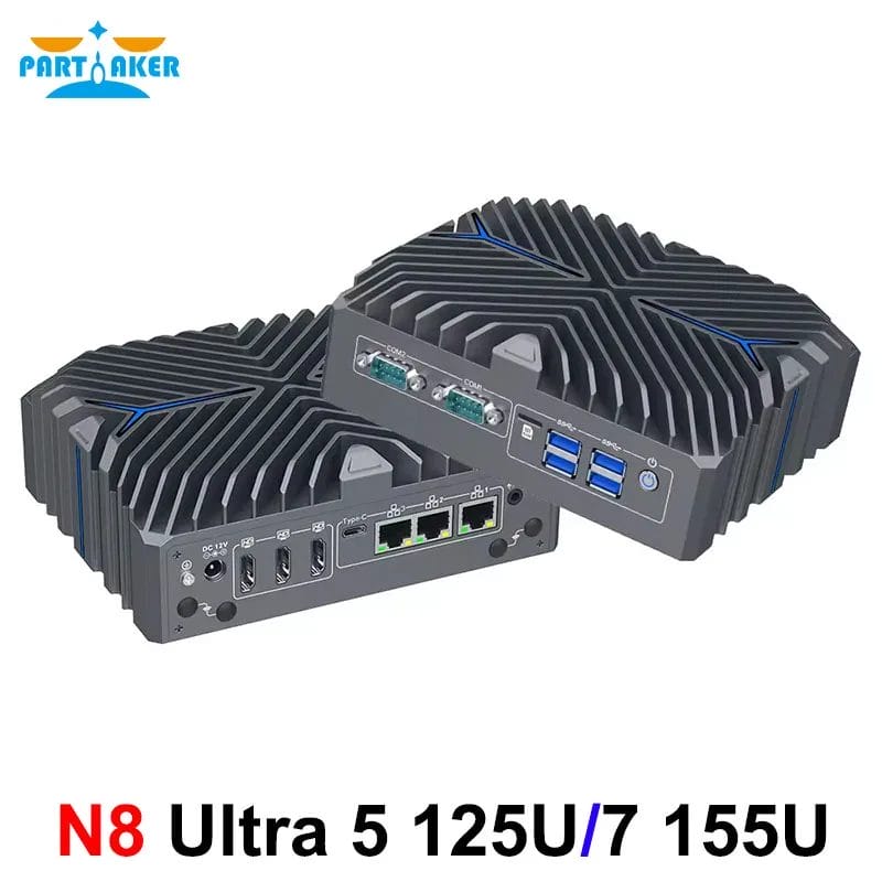 Partaker Industrial PC 14th Gen Ultra 5 125U Ultra 7 155U Win11 Pro 4K 3 x HD 3 x LAN Type-C Digital Signage Fanless AI Mini PC