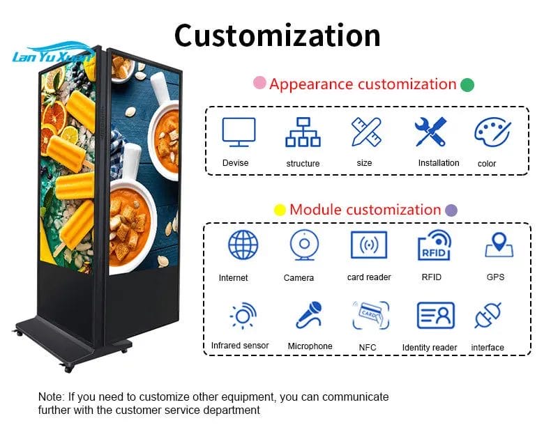 65 55 inch Indoor Super Slim Digital Standee Advertising Display Screen Digital Signage Kiosk Double Sided Touch Screen Kiosk
