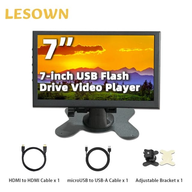 LESOWN USB Flash Drive Video Advertising Player 7.0inch TFT-LCD 1024×600 IPS Interactive Digital Signage for Kali Raspberry Pi