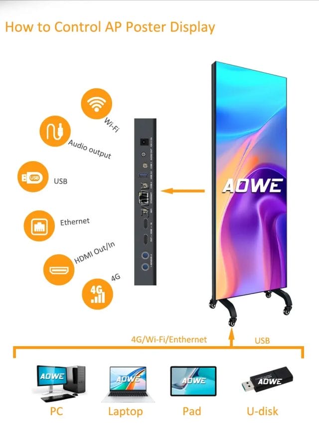 Floor Standing Indoor Led Video Advertising Screen Publicity Boards Equipment Graphic Digital Signage Led Poster Display