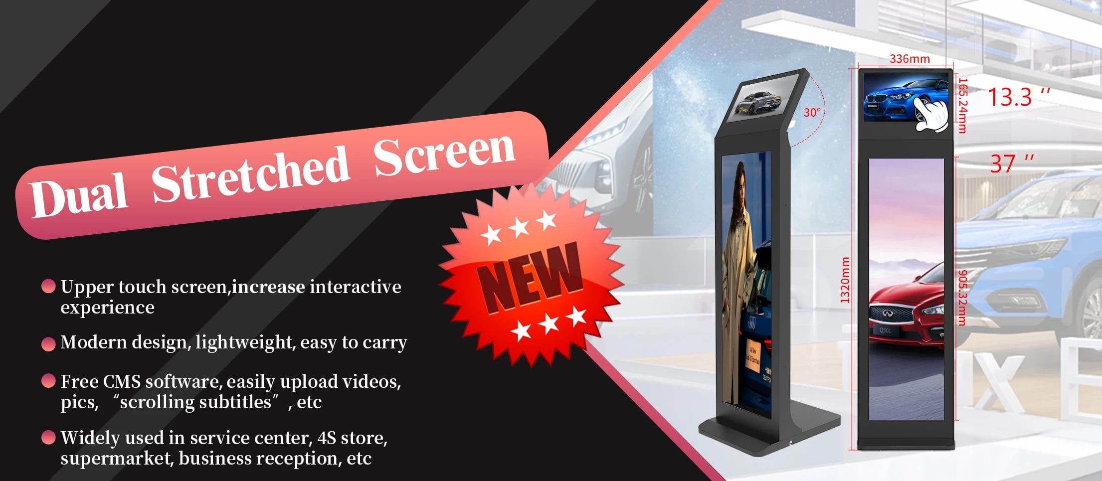 VETO 13.3+37 inches Dual Screen Standing Digital Signage Interactive Touch Kiosk horizontal and vertical LCD advertising player