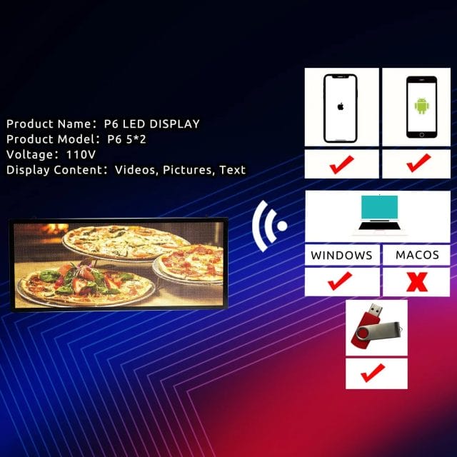 BOTAI P6 Programmable Led Sign 40''x17''Outdoor LED Display, IP65 Waterproof Scrolling Digital Signage Displays