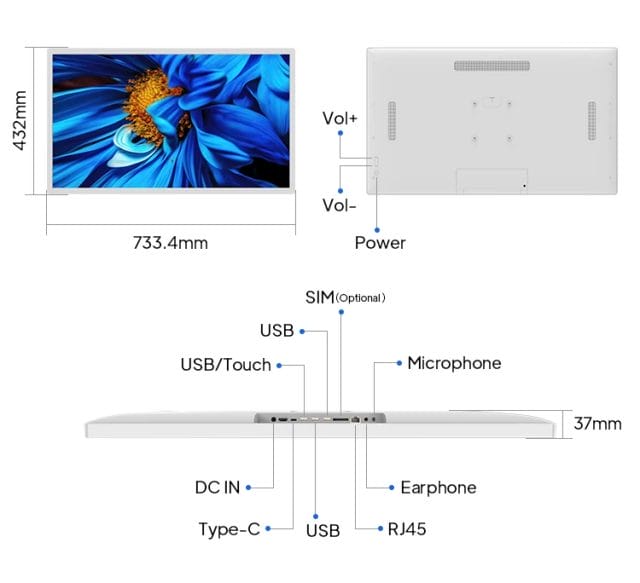 Commercial 32 Inch Wall Mounted Lcd Touch Screen Rk3588 WiFi 6 Restaurant Advertising Player Android Kiosk Digital Signage