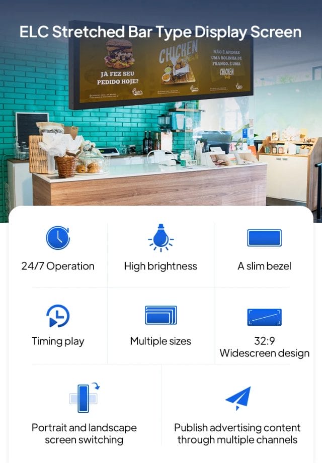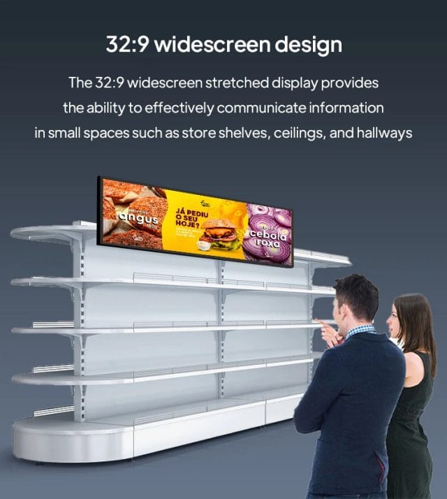 WB3802A Digital Signage Advertising Player Shelf Edge Supermarket Ultra Wide Shelf Lcd Stretched Bar Video Display
