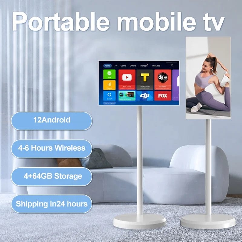 Advertising Display Board Lcd Digital Signage Battery television 2k Smart Tv s moveable On Wheels android Touch Screen Tv