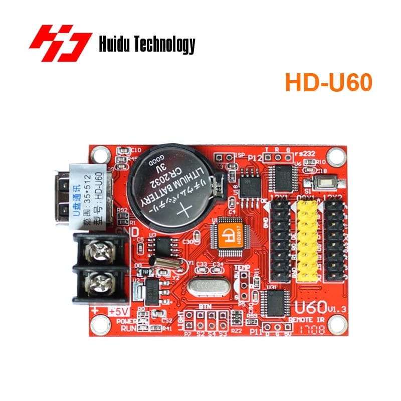 HD U60 Single Color LED Display Screen Pixel Control Card Digital Signage Compatible with HUB12 HUB08 USB Port Control