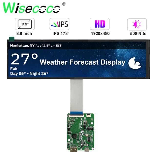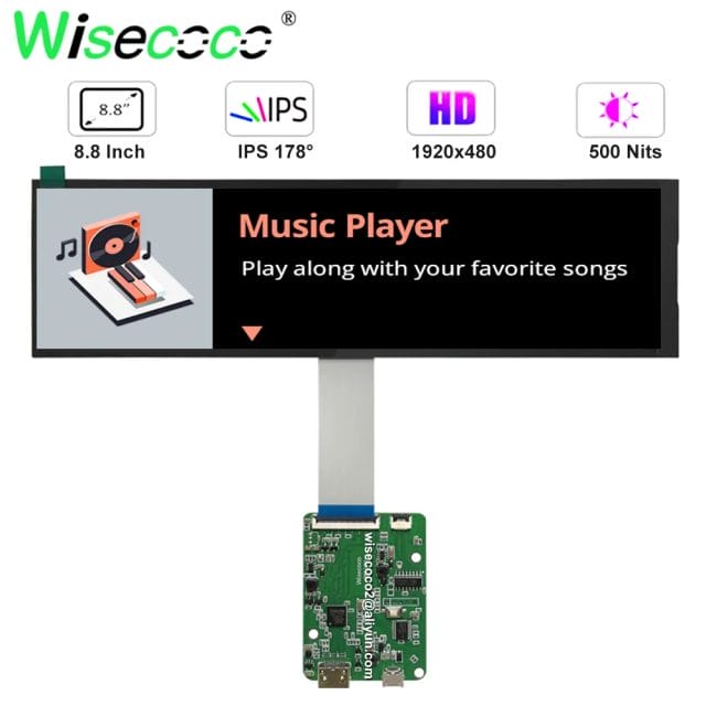 8.8 Inch 1920×480 Ultra-Wide Screen For Windows Raspberry Pi Digital Signage Display