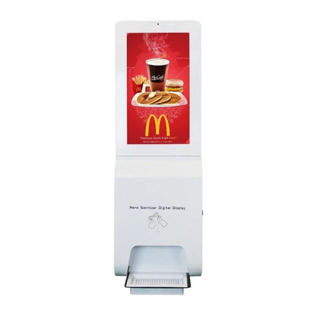 21.5 Inch Floor Standing Advertising Kiosk 1920×1080 Hd Display Digital Signage With hand Sanitizer Spray Dispenser
