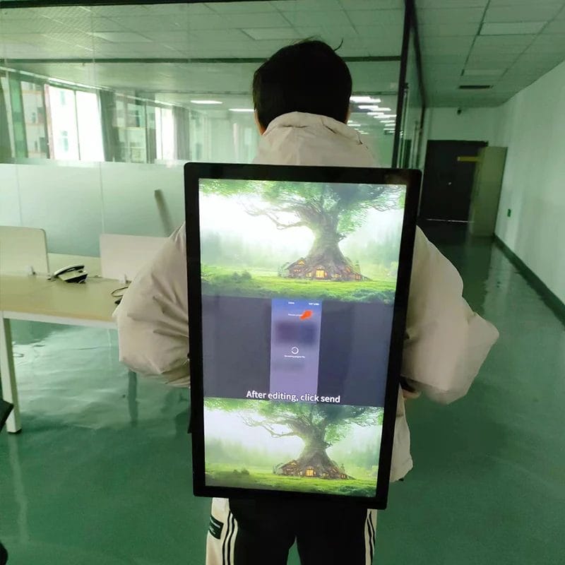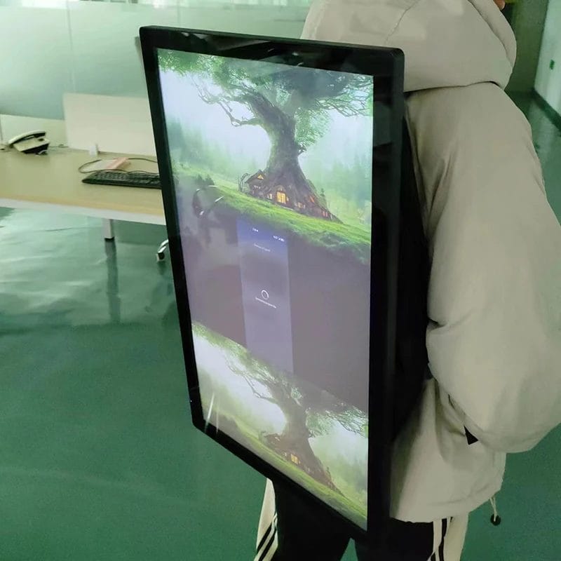 27 Inch Digital Signage Advertising Battery Powered Backpack Billboard LCD Screen Display Walking Billboard Levitation virtual