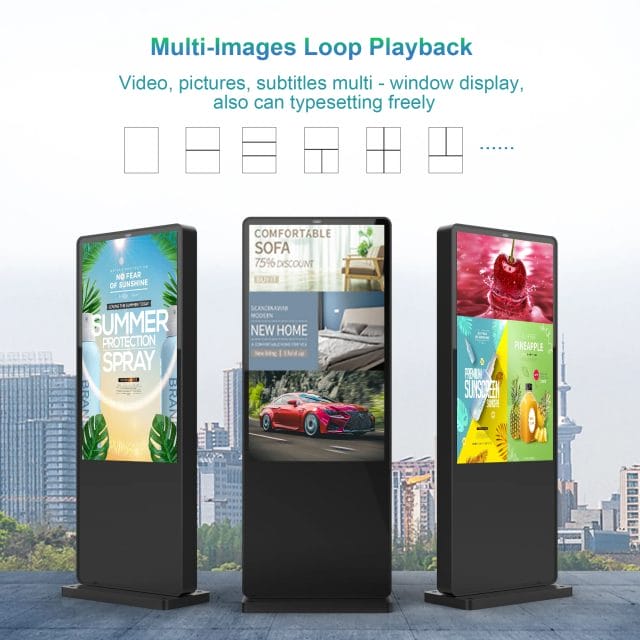 43 49 55inch Battery Powered In Store Advertising Board Display Restaurant Mobile Moveable Portable Digital Signage