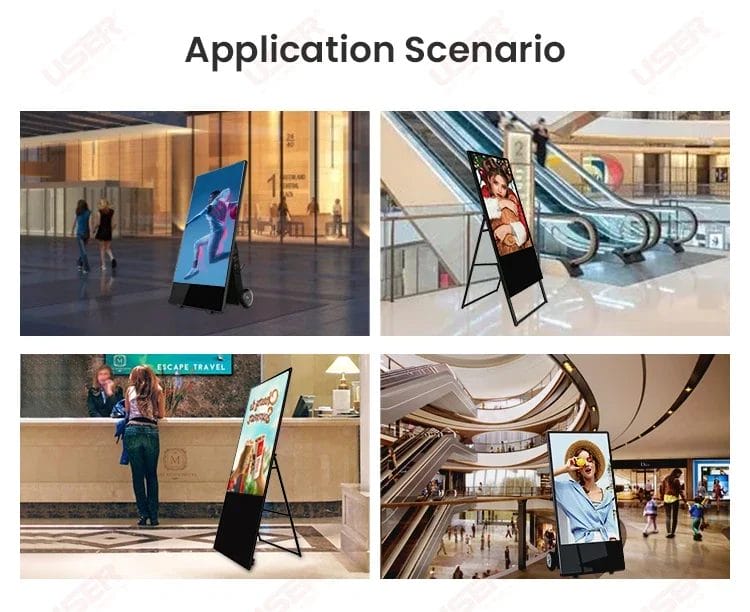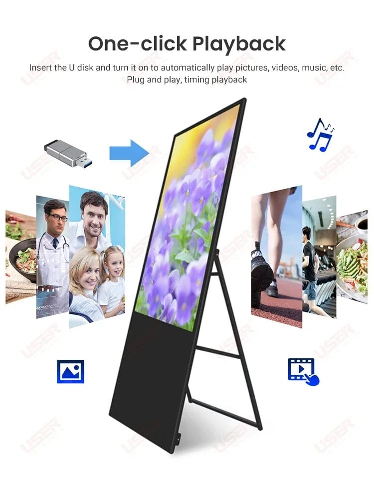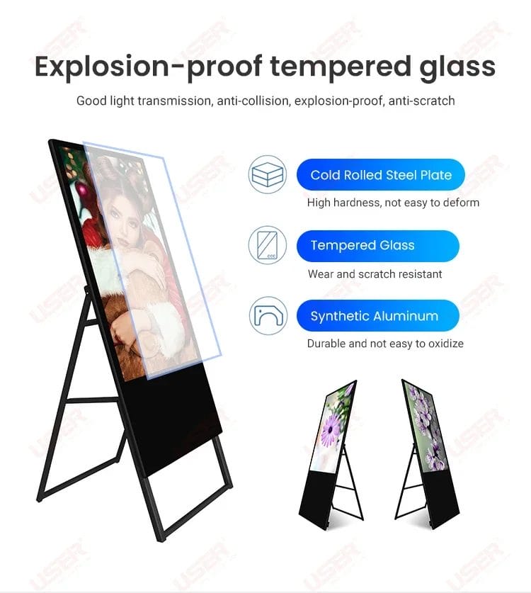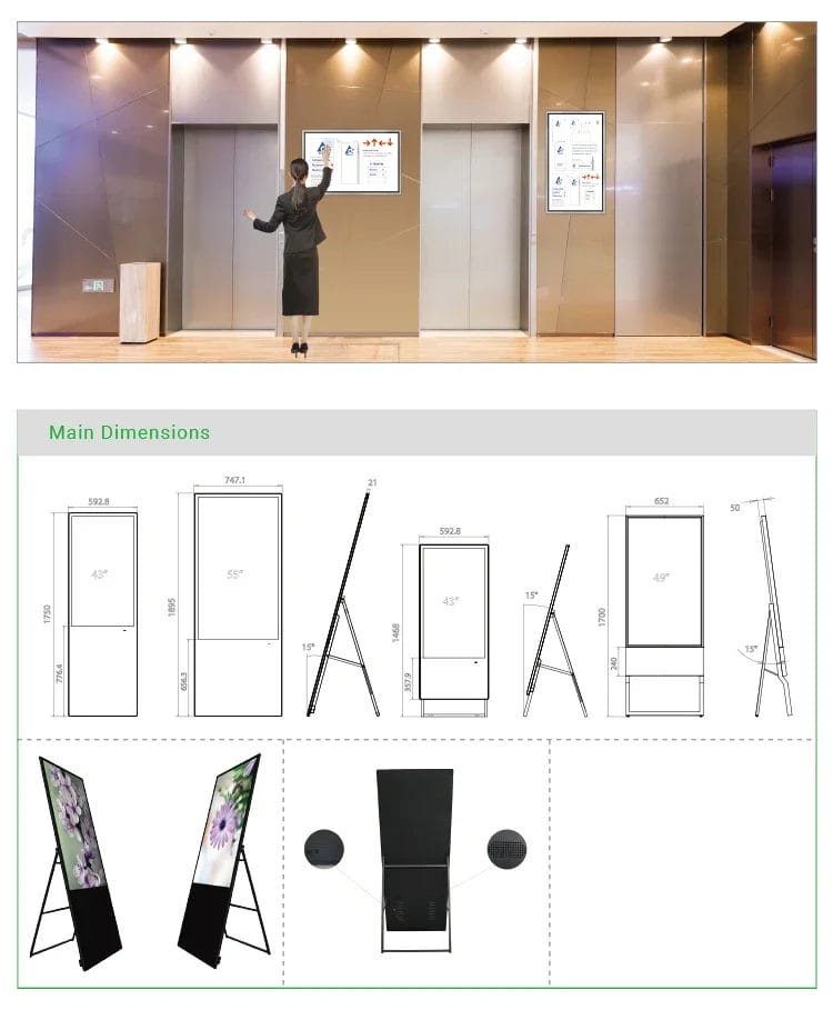 55 Inch Indoor Movable Foldable Poster Lcd Kiosk Displays Advertising Players Display Screen Stand Portable Digital Signage SDK