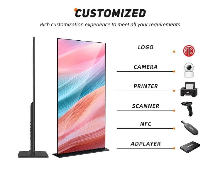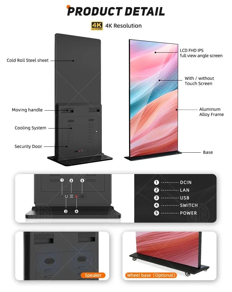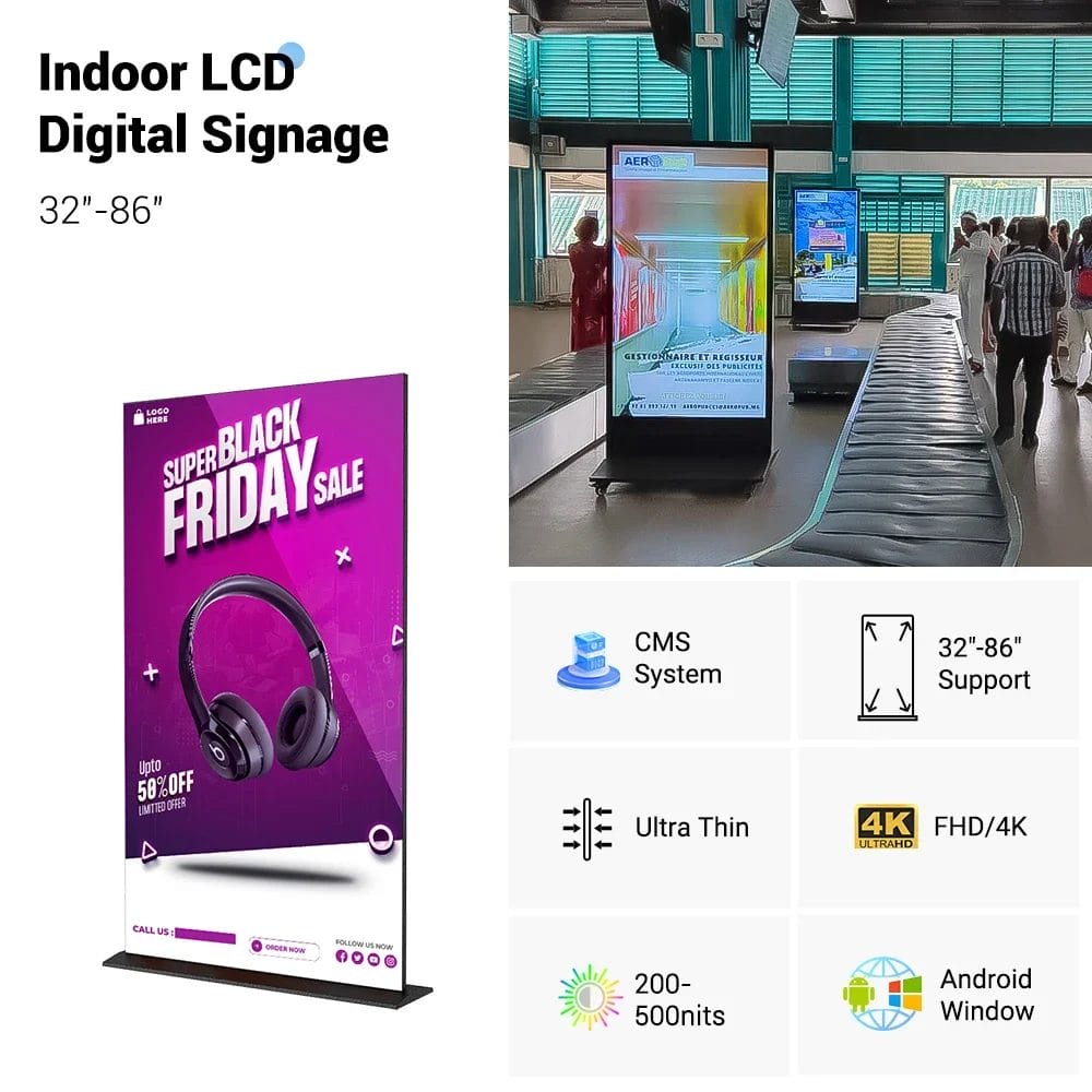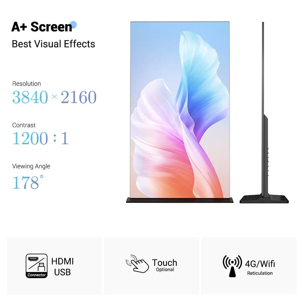 65" Indoor HDR Supported 4K LCD Digital Signage 1200:1 Contrast Ratio Advertising Retail Art Gallery Exhibitions SDK Included