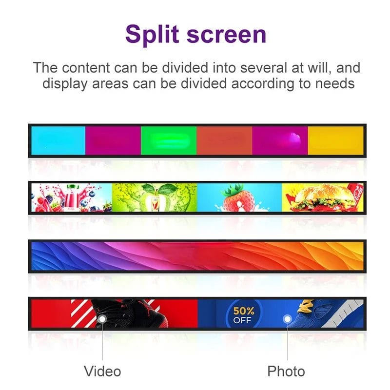 inch Ultra Wide Stretched Bar Screen LCD Digital Signage Android Network Advertising Display For Shelves