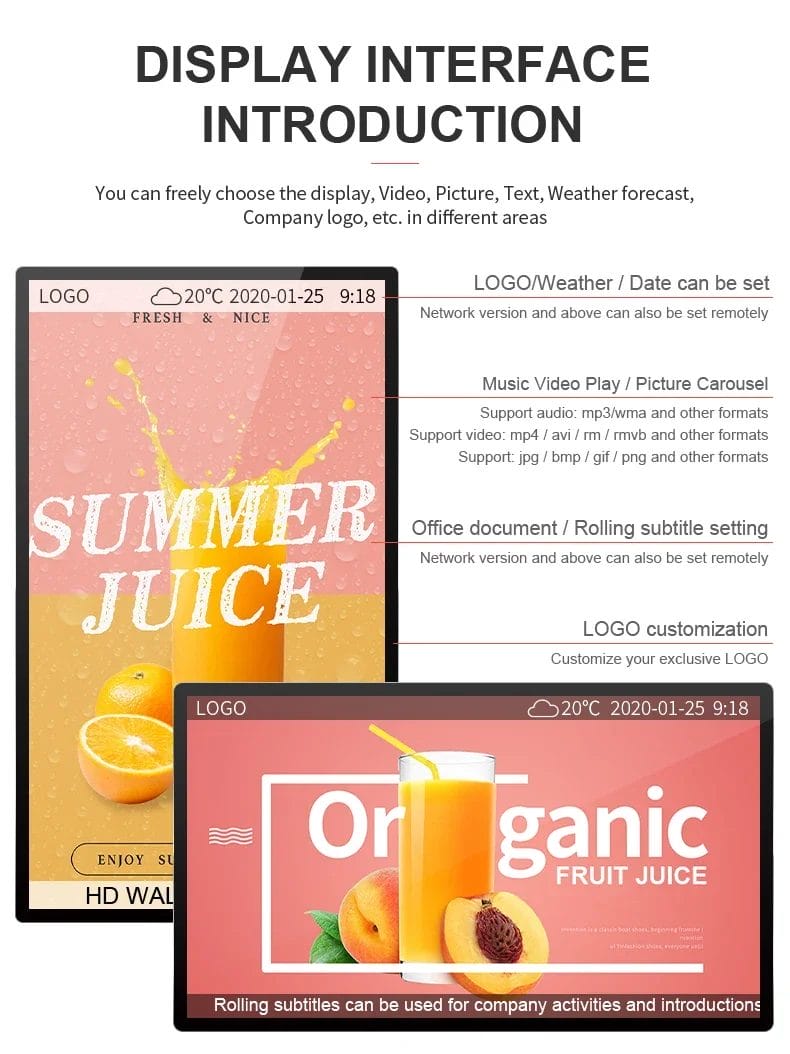 ODM 32inch Hanging Wall Mounted HD Screen Lcd Advertising Display Indoor Digital Signage And Displays