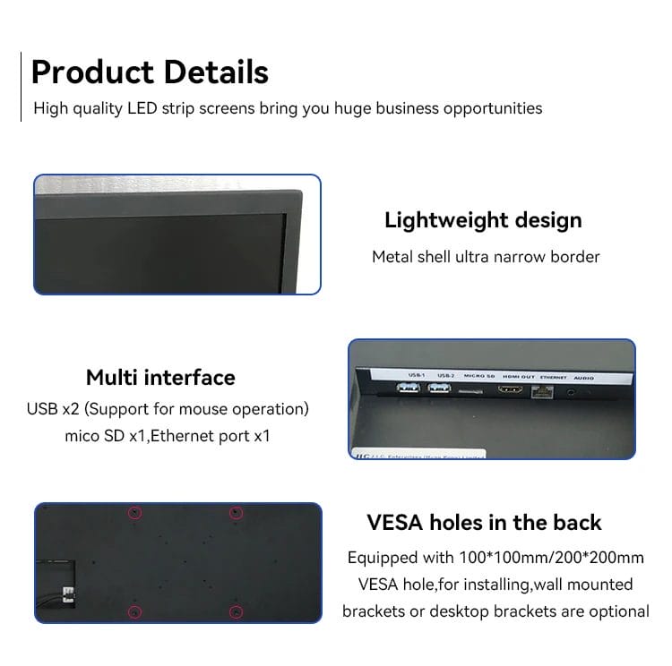 Wall Mounted 35.9 inch LCD Bar Display Digital Signage TFT Ultra Wide LED Strip Screens Stretched Bar for Advertising